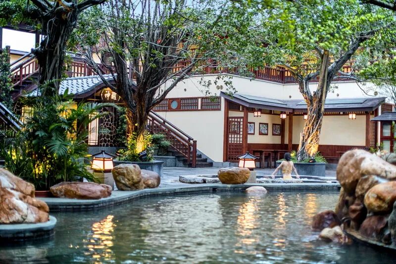 当我们进入珠海御温泉度假区,仿若踏入了一个远离尘世喧嚣的梦幻天地。踏入池中,温热泉水包裹全身,紧绷肌肉瞬间松弛,工作压力随着汗水一同排出体外。同事们惬意靠在池边,分享着生活趣事、工作心得,偶尔抬头,看蓝天白云映衬在绿树繁花之上,身心在这静谧时刻得到彻底治愈,仿佛所有烦恼都被抛诸脑后。